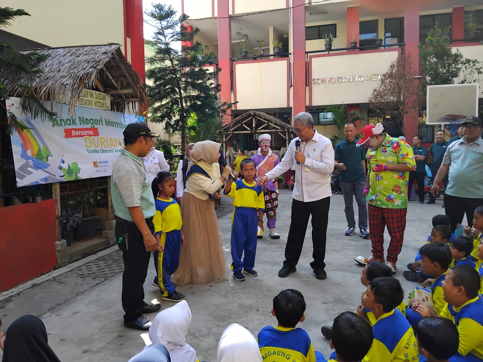 Kota Tangerang, 28 Mei 2025 – Dinas Perpustakaan dan Arsip Daerah (DPAD) Kota Tangerang kembali menggelar kegiatan literasi bertajuk Durian (Dunia Literasi Anak), yang kali ini diselenggarakan di SDN Kedaung Wetan 6 Kota Tangerang. Kegiatan ini menjadi bagian dari upaya berkelanjutan DPAD dalam menumbuhkan minat baca dan meningkatkan kemampuan literasi siswa-siswi sejak usia dini.