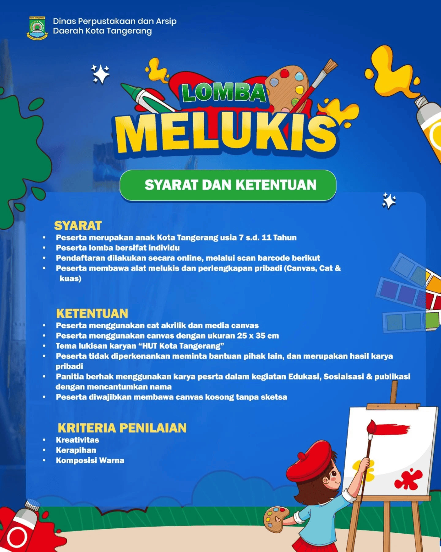 Melalui kegiatan ini, DPAD Kota Tangerang mengajak seluruh masyarakat untuk mendukung pengembangan potensi anak-anak melalui kegiatan positif dan kreatif. Mari ajak putra-putri terbaik untuk berpartisipasi dan bersama-sama merayakan semangat kreativitas dalam HUT Kota Tangerang ke-33.