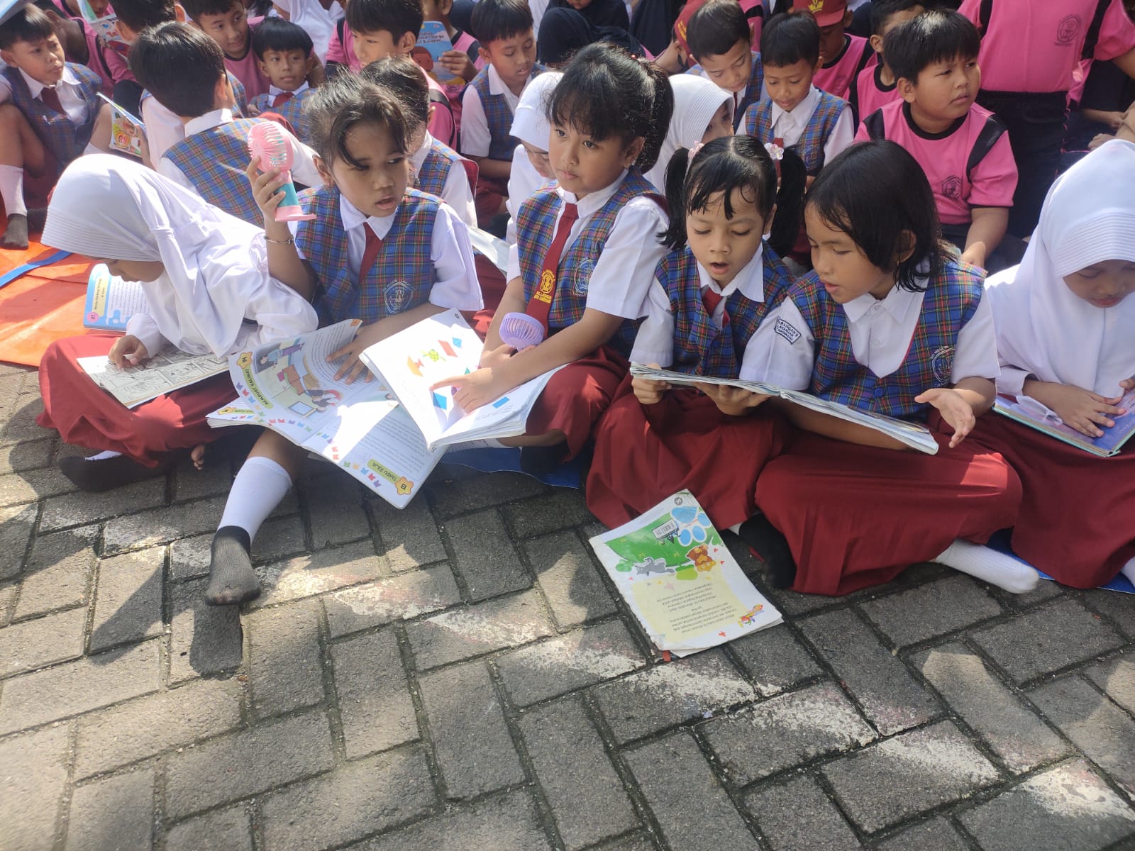 Kegiatan berlangsung dengan penuh antusiasme dan keceriaan. Para siswa tampak aktif mengikuti setiap sesi yang disajikan, menunjukkan bahwa pendekatan literasi yang kreatif mampu menarik minat anak-anak untuk belajar melalui buku dan aktivitas edukatif.