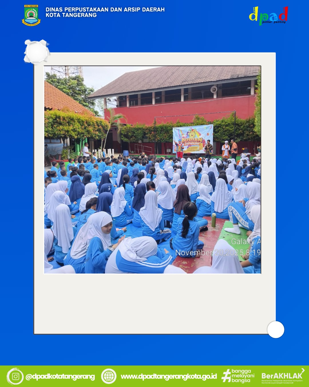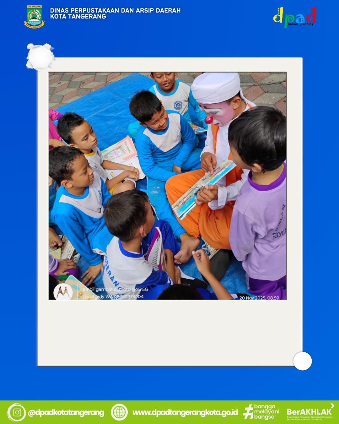 Tangerang, 20 November 2025 Dinas Perpustakaan dan Arsip Daerah (DPAD) Kota Tangerang kembali menghadirkan Dunia Literasi Anak, sebuah program edukatif yang dirancang untuk membangkitkan minat baca serta mengembangkan imajinasi siswa sejak usia dini. Kegiatan kali ini dilaksanakan di SDN Tangerang 1 dan diikuti dengan penuh antusias oleh para siswa.