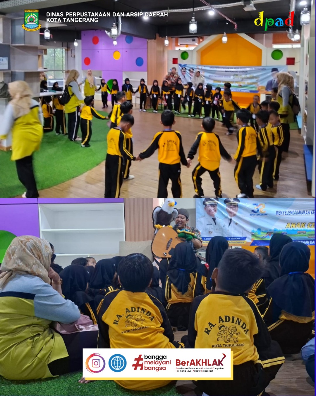 Kota Tangerang, 18 Desember 2025 - Perpustakaan Umum Daerah Kota Tangerang, hari ini, dipenuhi suasana ceria dan penuh antusiasme. Anak-anak dari TK Al Bayan, RA Adinda, serta SDN Panunggangan 3 Cibodas berkumpul untuk mengikuti kegiatan storytelling bersama Bunda Literasi Kota Tangerang.